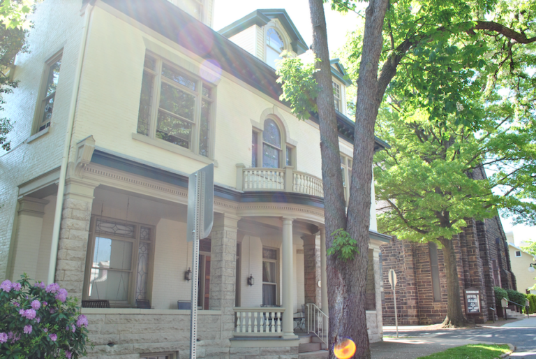 This two-bedroom, two-bath (1¾) apartment is located in an elegant, historic building just one block from Market Street in the heart of downtown Lewisburg. The building features a stately front porch, a backyard with a patio, and beautiful stained glass windows. This first-floor apartment boasts central A/C and wood floors throughout.
