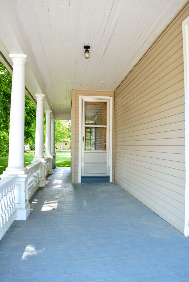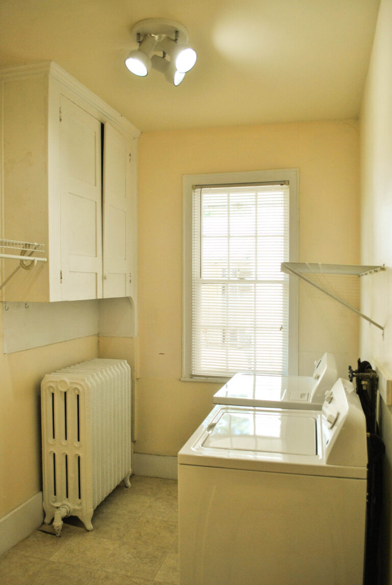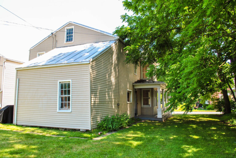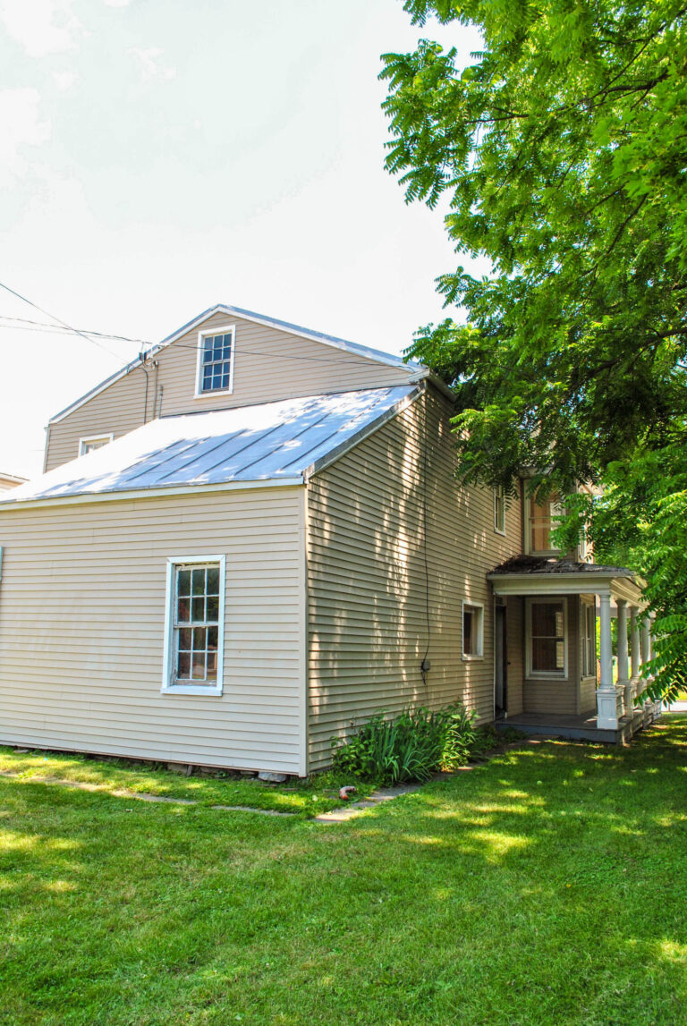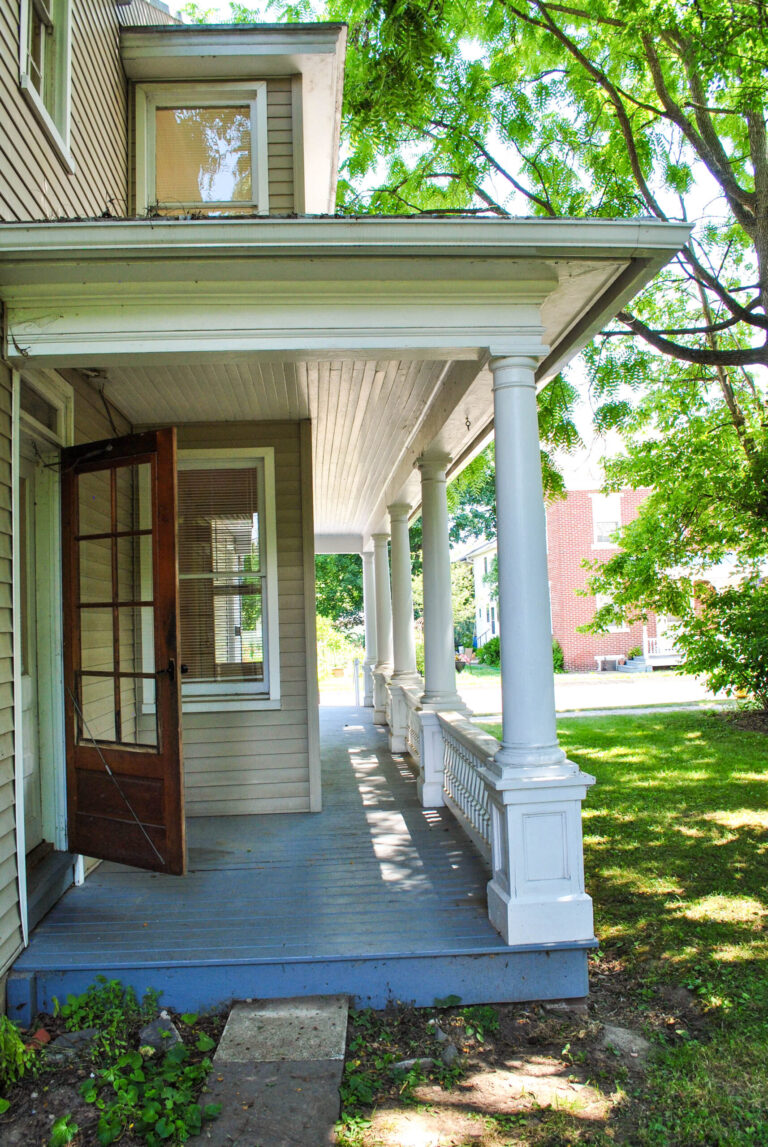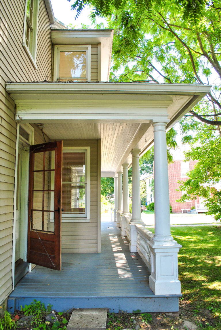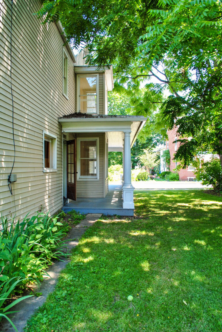 A short walk from downtown shops and parks, this home features a large yard and a side porch with a tiled kitchen floor. The first floor includes a living room, dining room, media room, updated kitchen, and a full bath. On the second floor, there are three bedrooms and an additional full bath. A laundry room off the kitchen includes a washer and dryer, and there are plenty of storage areas throughout the home.