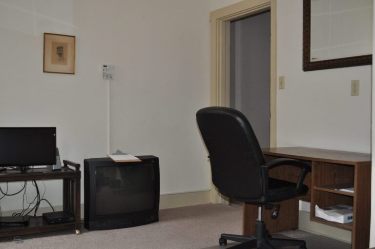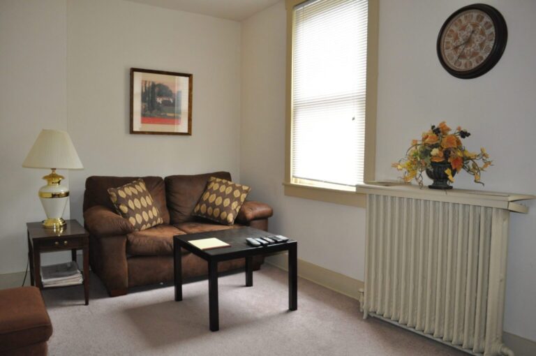 This home is located in an elegant, historic building within a lovely neighborhood and includes a stately front porch, backyard, and patio. The floors are carpeted, and the home features an eat-in kitchen and a spacious living room. A washer and dryer are conveniently located within the unit.