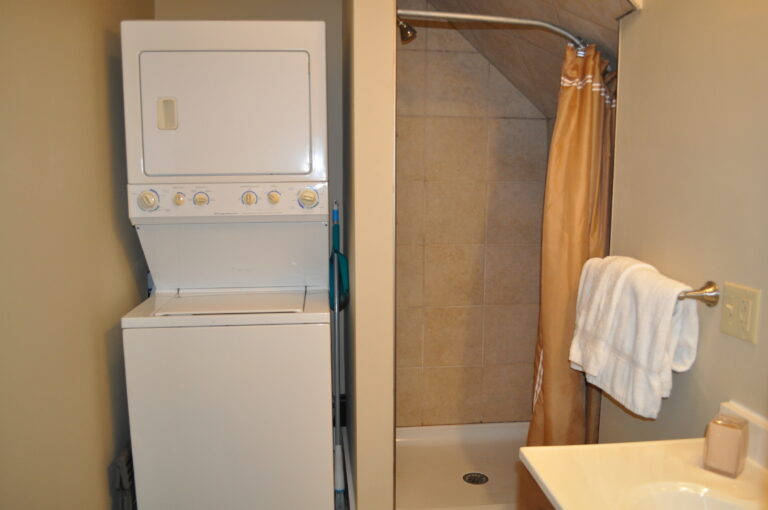 The apartment comes complete with modern comforts, including a Smart TV, high-speed internet, and all essential linens for bed and bath. The kitchen is fully equipped with cookware, kitchenware, and a dining table, along with a washer and dryer. The cozy living room and bedroom are tastefully furnished, featuring a full-size bed.