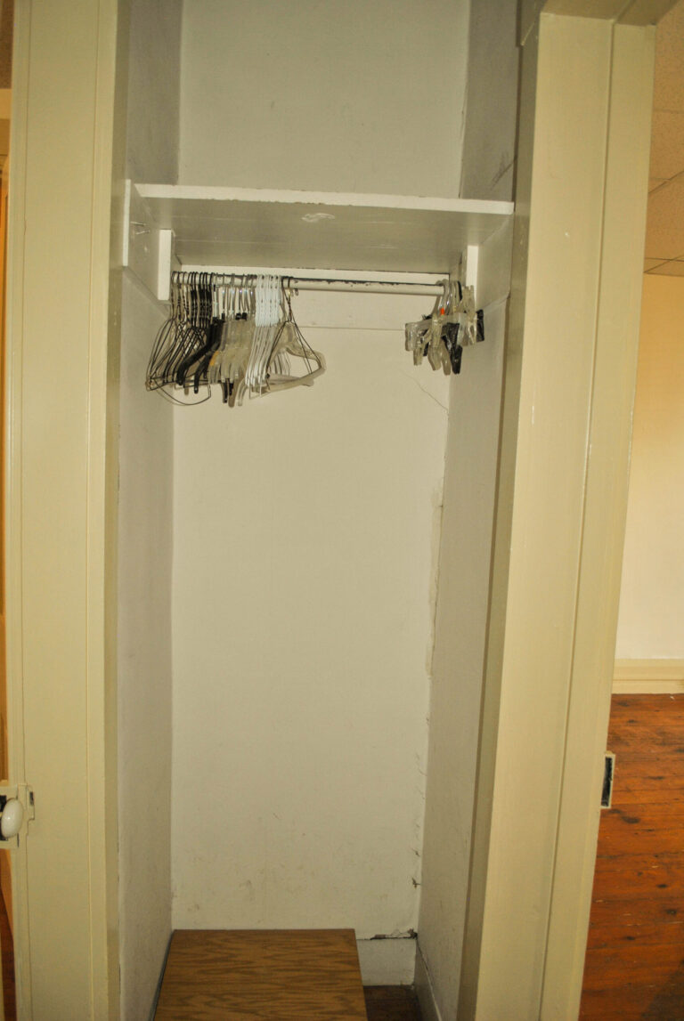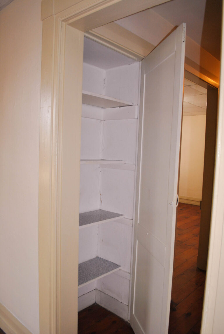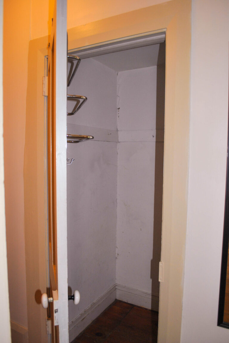 This apartment is located in a historic building just one block from downtown shops. It features a backyard, an eat-in kitchen, and a spacious living room with high ceilings and ample closet space. Coin-operated laundry is available within the building.