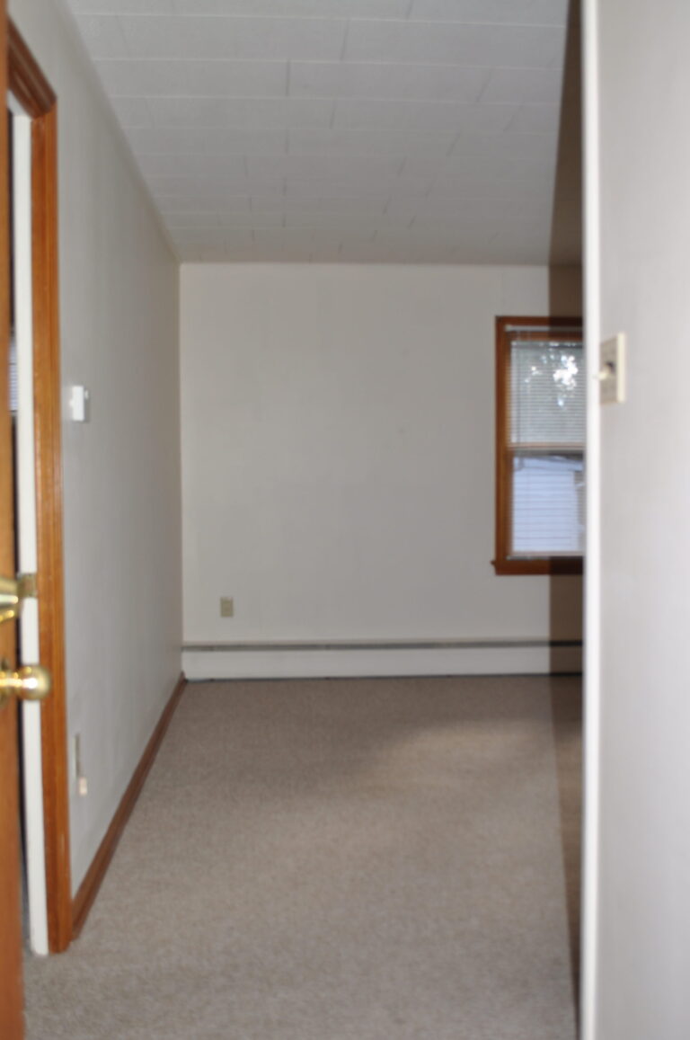 This apartment is located in a historic building just one block from downtown shops. It features a backyard and patio, along with hardwood floors throughout. The apartment includes a kitchen and living room, with coin-operated laundry available within the building.