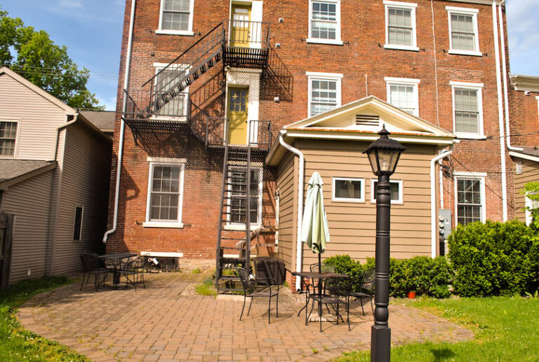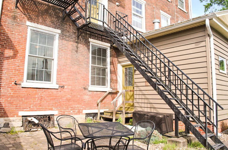The unit features three bedrooms and two baths, along with central air for year-round comfort. A shared patio and yard provide outdoor space to relax or socialize, and laundry facilities are included for convenience.